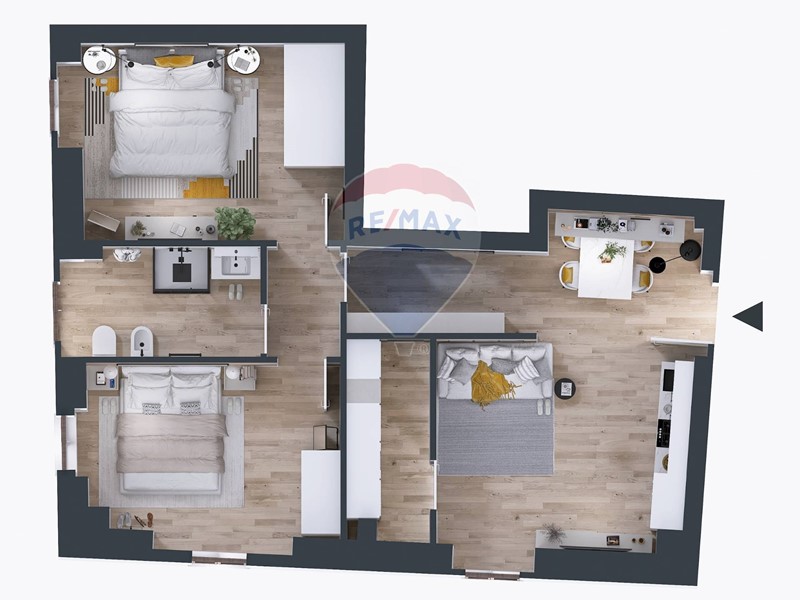 Dotato di riscaldamento autonomo con caldaia a condensazione e climatizzatore dual split. Posto al piano terra senza ascensore e composto da: Cucina a vista su soggiorno, disimpegno, ripostiglio, 2 camere e bagno finestrato con ampia doccia.