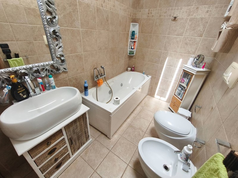 Benvenuti in questa fantastica proprietà in vendita! Siamo lieti di presentarvi un bellissimo immobile in vendita nel comune di Alezio, a due passi dai principali punti di interesse. La soluzione proposta, posta al primo piano, si compone di un ingresso, una spaziosissima zona living con angolo relax, una sala da pranzo, una cucina, tre camere da letto delle quali due matrimoniali e una con cabina armadio integrata, due bagni, un balcone e una veranda con angolo barbecue. Al piano superiore troviamo una bellissima e ampia terrazza con locale deposito e un impianto fotovoltaico molto utile per soddisfare tutte le esigenze di chi ci abita. Questa soluzione è l'investimento ideale per chi desidera dimorare in una casa dotata di ogni comfort e che garantisce luce e aria in ogni suo ambiente.