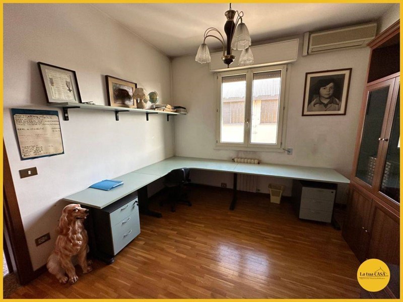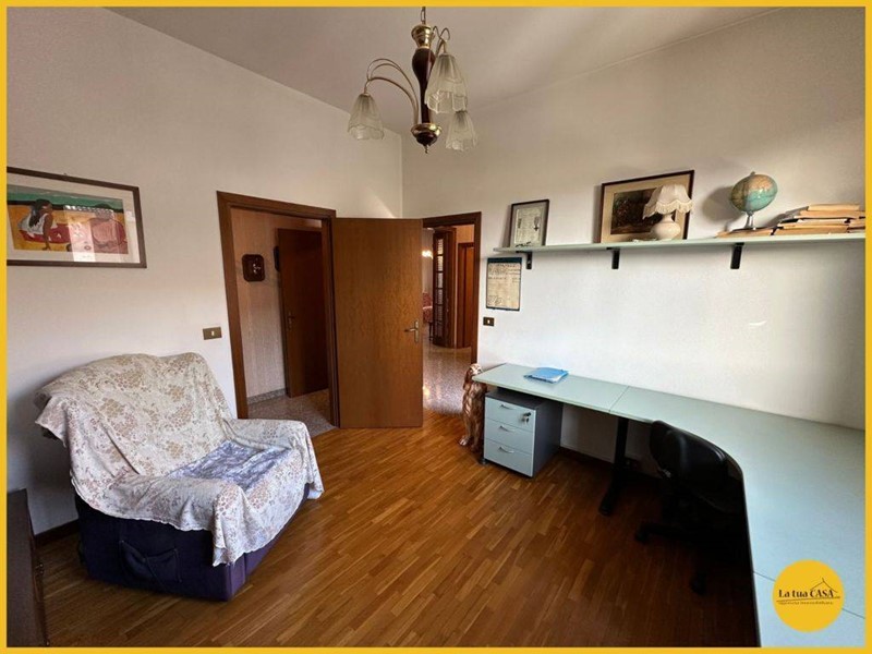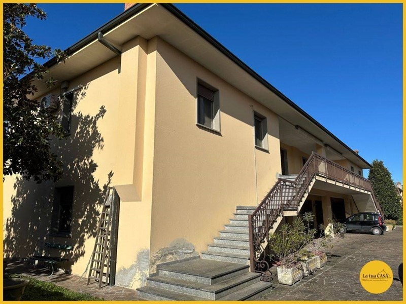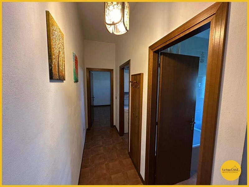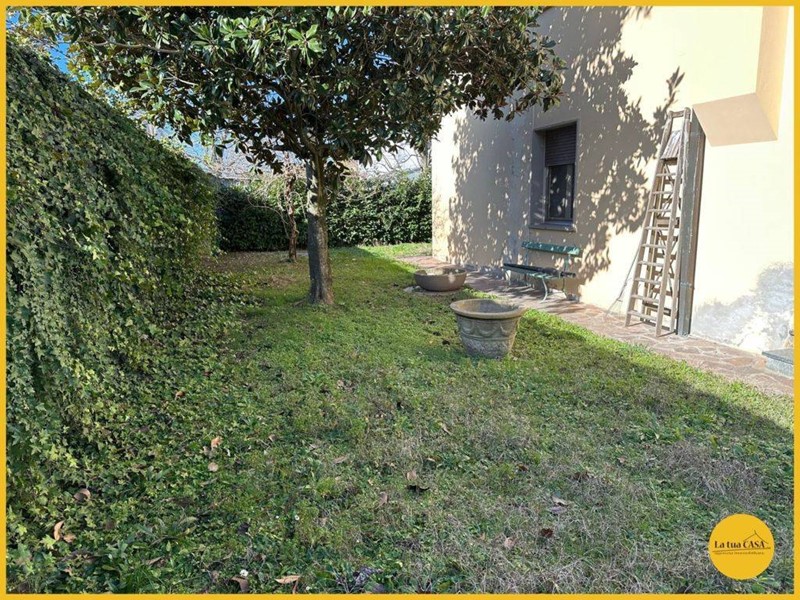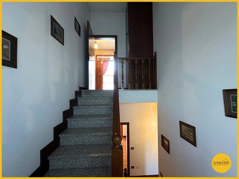 Primo piano, ingresso indipendente, disimpegno, cucina abitabile, ampio soggiorno contenente una piattaforma elevatrice comunicante con il garage sottostante, tre camere da letto matrimoniali, 2 bagni tra cui uno compreso di vasca e uno di soli servizi necessari, due ampi balconi. Giardino esclusivo di proprietà compreso di impianto di irrigazione, un pozzo, e un impianto di illuminazione. E' possibile effettuare una recinzione del giardino e dell'immobile stesso rendendolo indipendente.