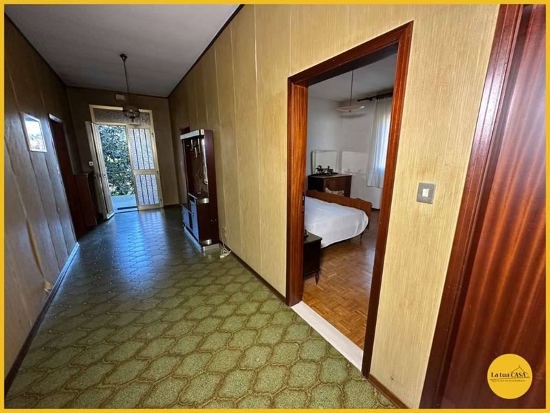 -piano terra: portico, ampio ingresso, cantina, garage di circa 34 mq, lavanderia, camera, bagno/lavanderia con accesso al giardino, tinello con camino, portico e vano scale;