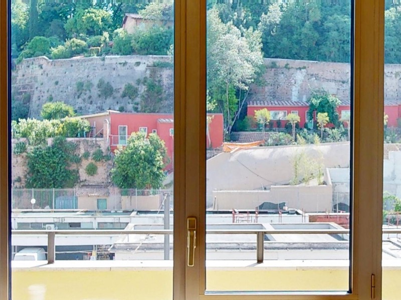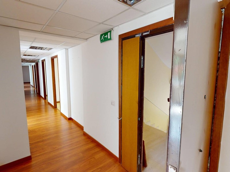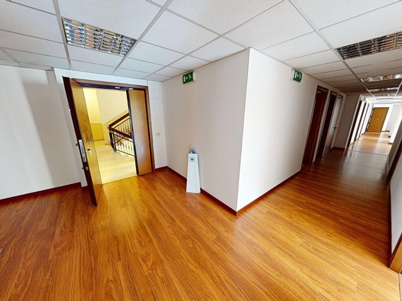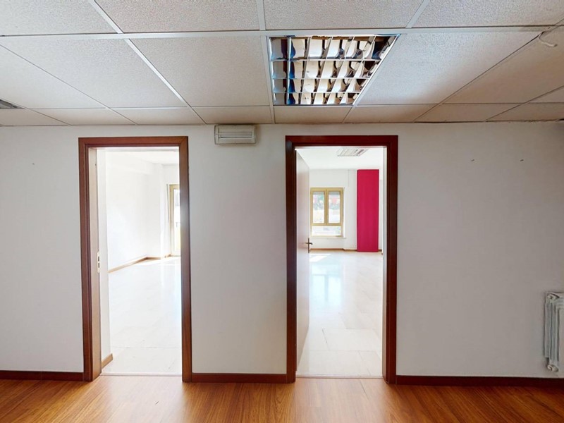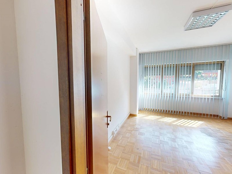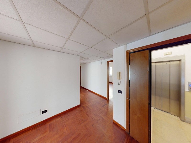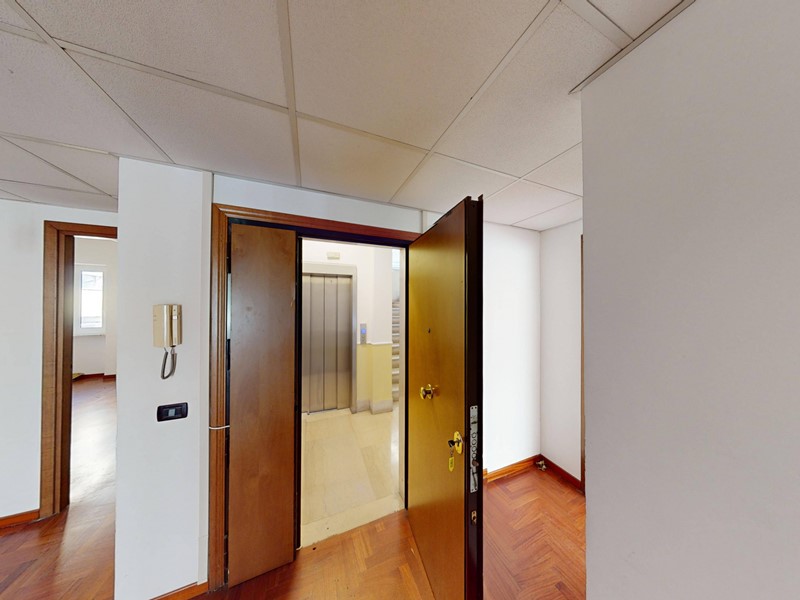 L'ufficio, da ristrutturare completamente, è ubicato al piano terzo e misura 595 mq totali, di cui 570 mq di uffici, divisi da tramezzature interne, e 25 mq di balconi, da cui è possibile godere di splendidi affacci su Roma.