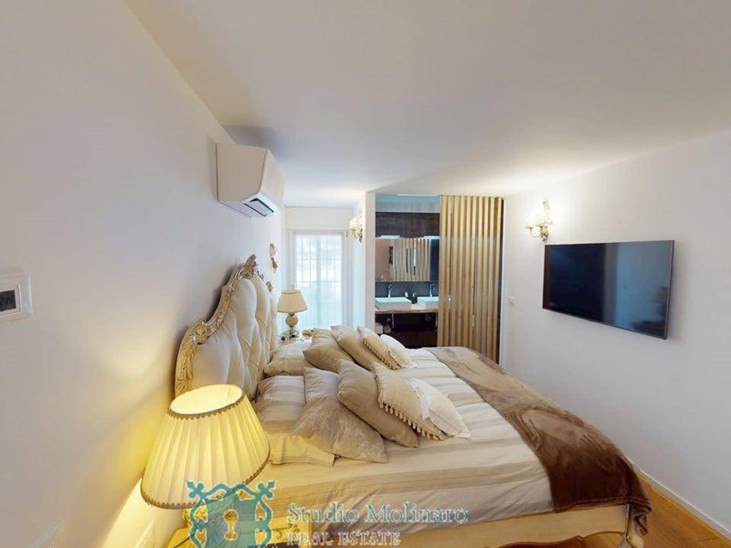 Una scala di design conduce al sesto piano, dove si trovano due camere da letto, due bagni di cui quella padronale con cabina armadio e bagno en suite. Il vero fiore allocchiello di questa residenza è lesclusivo terrazzo di 80 mq, con una disposizione regolare che permette di godere di unoasi di relax unica, in totale privacy.