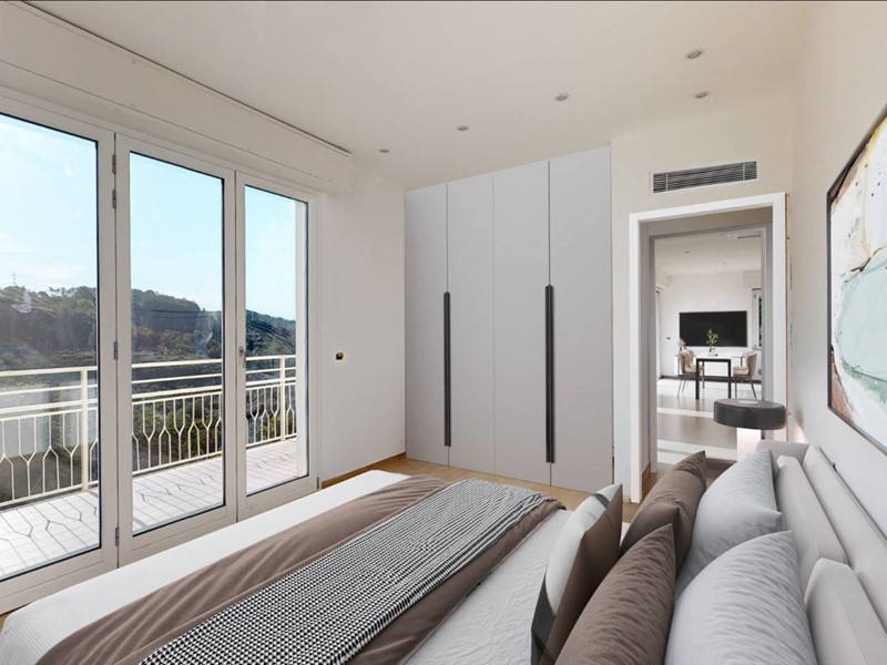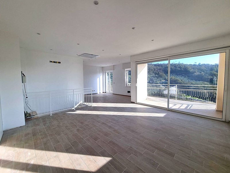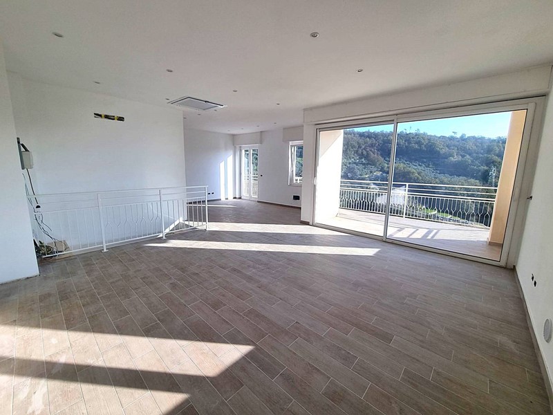 L'ingresso ci accoglie su un ampio soggiorno con angolo cottura di circa 40 mq da cui si può accedere ad un grande terrazzo vivibile con vista su tutta la vallata del Finalese e sul mare, dalla zona giorno si può accedere alle due camere matrimoniali di cui una con il suo bagno privato, un secondo bagno padronale completa la proprietà.