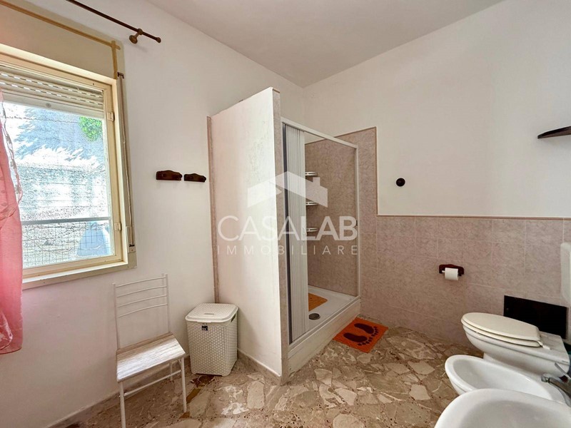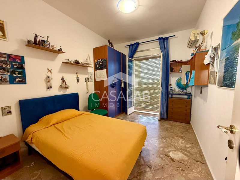 Il primo piano, zona notte, è composta da una camera da letto con finestra e accesso a un ampio terrazzo con vista mare, altre due camere da letto, un bagno con doccia, un pratico ripostiglio e un secondo terrazzino abitabile.