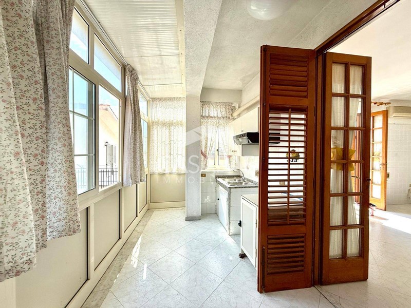 Lappartamento è composto da un grande salone luminoso, perfetto per momenti di convivialità, ampia cucina abitabile, ben quattro camere da letto e due bagni (uno con vasca e l'altro con doccia: quello con doccia è utilizzato anche come lavanderia in quanto ha l'accesso al balcone). La cucina è dotata di una pratica veranda chiusa. Si presenta in buono stato generale, gli infissi sono il legno e la pavimentazione in ceramica