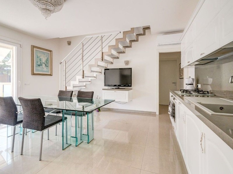 Vendiamo a Cervia in contesto residenziale, a soli 450 metri dal mare, quadrilocale in palazzina di sole 7 unità immobiliari. L'immobile di pregio, posto al piano primo, si sviluppa su due livelli ed è così composto: ingresso su luminoso soggiorno con cucina a vista, balcone con arredi da esterno, disimpegno notte, camera da letto matrimoniale sul piano con accesso a terrazzo esclusivo e bagno finestrato con box doccia. Salendo al piano mansardato, disimpegno, due camere da letto ed ulteriore bagno finestrato con box doccia. L'immobile presenta finiture di pregio, travi a vista in abete sbiancato, riscaldamento a pavimento, impianto di climatizzazione, impianto di allarme ed impianto di aspirazione centralizzata. Completa la proprietà un garage al piano interrato. La soluzione si vende completa di arredi. RIF. 410.