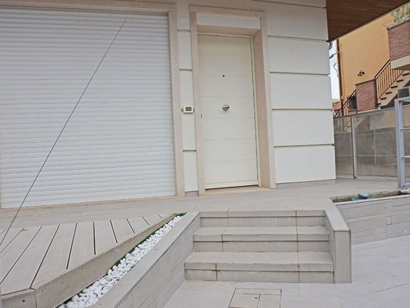 Vendiamo a Cervia, a pochissimi passi dal mare e dalle mura del centro storico, in piccolo complesso condominiale di nuovissima costruzione, appartamento posto al piano terra con giardino privato. L'immobile è dotato di ingresso indipendente composto da un luminoso soggiorno sul giardino, cucina in parete, una camera da letto matrimoniale con uscita sul cortile frontale e bagno con box doccia. Comodo garage posto al piano sottostrada, con basculante. L'appartamento è dotato di tutti i comfort (domotica, infissi in PVC con doppi vetri, porte blindate ecc. ) ed è rifinito con materiali di altissimo livello. Rif. 134 - 4.