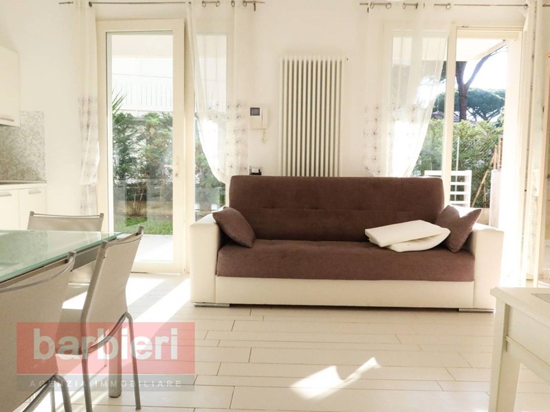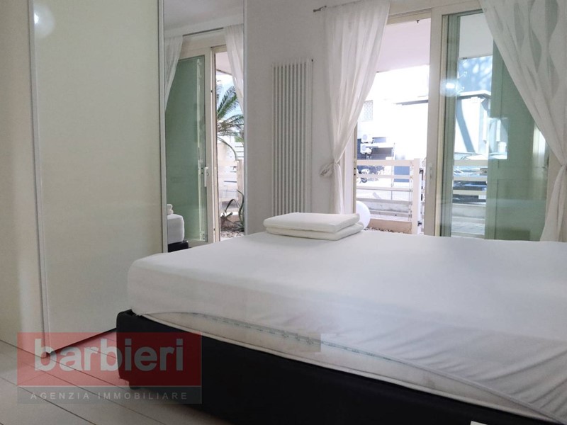 Affittiamo in centro a Milano Marittima appartamento di recente costruzione al piano terra con ingresso e giardino indipendente. Composto da soggiorno con cucina in parete e due ampie porte finestre per accedere allo spazio esterno, camera matrimoniale, seconda matrimoniale con bagno privato ed accesso ad un ulteriore cortile privato sul retro, bagno nel disimpegno tra le due camere. Aria condizionata, due posti auto e spazio esterno con lavatrice e possibilità di ricoverare le biciclette.