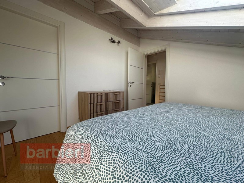 Affittiamo in zona residenziale e tranquilla un appartamento al piano primo di una prestigiosa palazzina. Lappartamento disposto su due livelli è composto da ampio soggiorno con angolo cottura e un bagno con box doccia. Al livello superiore troviamo due camere da letto matrimoniali e un ulteriore bagno con box doccia. Completano lofferta un posto auto coperto e un terrazzo loggiato.