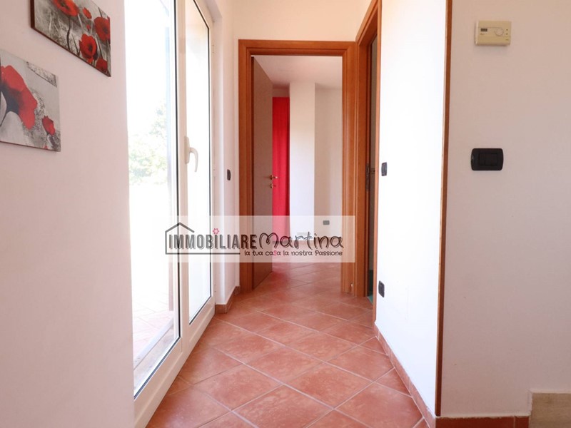 è consentito da un cancello pedonale e uno carrabile, per l'automobile. Il giardino ospita il posto auto scoperto per almeno due automobili e il box auto con accesso diretto in casa. Una veranda spaziosa, ospita il portone d'entrata, blindato, che si apre sul salone spazioso e ben illuminato da una grande finestra a tre ante. Un disimpegno, accoglie, sulla destra, un bagno con doccia e finestra e sulla sinistra, la cucina, abitabile, con accesso al giardino, consentendo di poter comodamente consumare piacevoli pasti all'aperto, durante la bella stagione. Una bella scala in marmo, ci accompagna al piano superiore, in cui, su un comodo corridoio, illuminato da una grande finestra, si articola la zona notte composta da due camere da letto, entrambe con accesso su di un balcone e un bagno con vasca e finestra. L'immobile presenta la predisposizione per la canna fumaria. Gli infissi sono tutti in PVC con doppi vetri.
