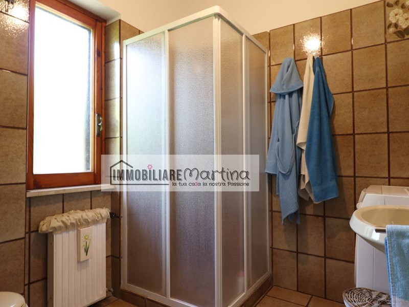 anteriore, abbiamo un cancello carrabile con posto auto e un cancello pedonale. Di fronte, una veranda spaziosa, ospita il portoncino dingresso, blindato. Varcandolo, ci troviamo nel grazioso salone con camino. Lambiente è ben illuminato da una porta finestra a tre ante con accesso sulla veranda. Qui, abbiamo anche un ripostiglio e un bagno di servizio con doccia grande e finestra. Davanti la porta dingresso, un arco ci introduce nella cucina quadrata e spaziosa con porta finestra, dalla quale si accede al giardino retrostante la casa, in cui è presente un barbecue in muratura, per ottime grigliate estive, un ripostiglio e il locale caldaia. Entrambi i giardini sono arricchiti da piante da frutto e da un impianto automatico per quanto riguarda lirrigazione e lilluminazione. Tornando nel salone, una bella scala in marmo, ci conduce al piano superiore, in cui si sviluppa la zona notte, composta da due camere da letto, entrambe con porta finestra e accesso in uno stesso balcone, una cameretta, che ospita uno spazioso ripostiglio, anche questa con porta finestra e un lungo balcone angolare. Sempre su questo piano, troviamo un secondo bagno con vasca e finestra.