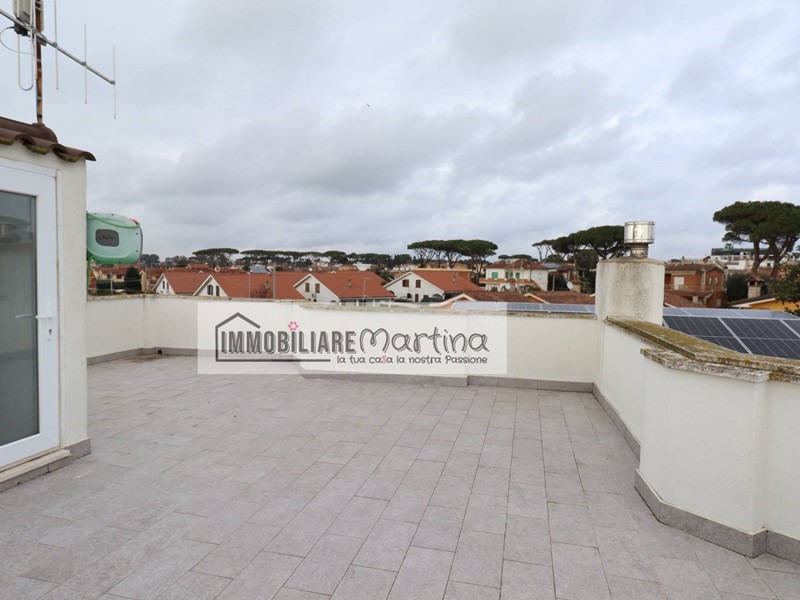 La proprietà è arricchita da un ampio giardino, un terrazzo panoramico, sul verde di Lido dei Pini e da un garage ampio, con accesso diretto all' abitazione.