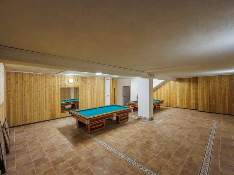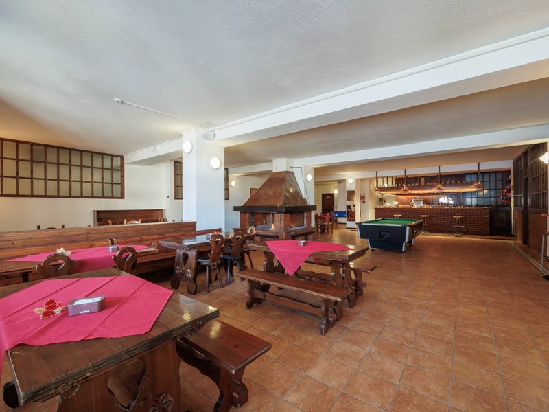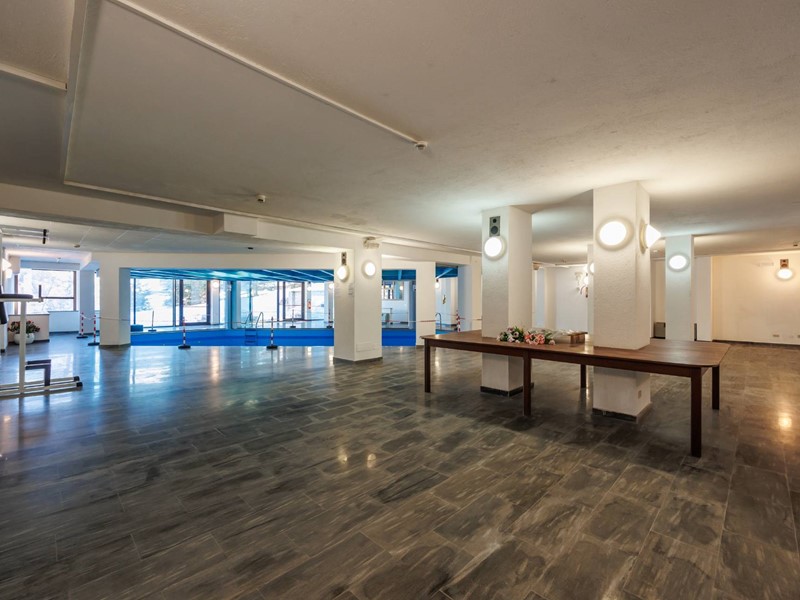 Sono presenti sale riunioni utilizzabili per meeting, convegni, work shop, oltre a piscina olimpionica, sala convegni, sala giochi per adulti e sala giochi per bambini, palestra, sala benessere, ampio bar, due ristoranti, ampia cucina, ampia dispensa, oltre a locali di deposito, magazzini, spogliatoi.
