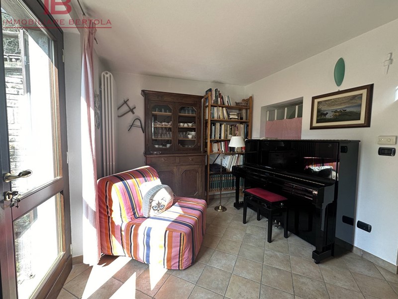 La casa dispone di un totale di 7 locali: al piano terra la zona giorno, entriamo direttamente in un salottino che ci conduce alla cucina abitabile. Stupende le volte a botte che caratterizzano questo ambiente. Al piano primo un grande disimpegno, ideale come zona lettura/relax/studio con vetrata con vista sulle montagne, dà accesso alla prima camera e al grande bagno. Al piano secondo un altro disimpegno affaccia sul balcone con vista e dà accesso alle due camere, una delle quali con bagno privato.