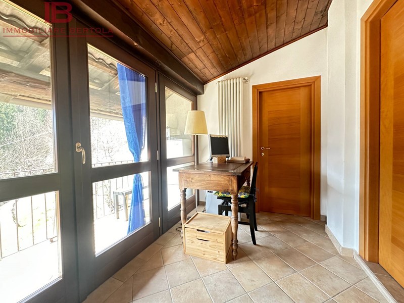 Gli spazi esterni includono un balcone e un terrazzino, ideali per godersi la vista sulla valle e il verde che circonda la casa.