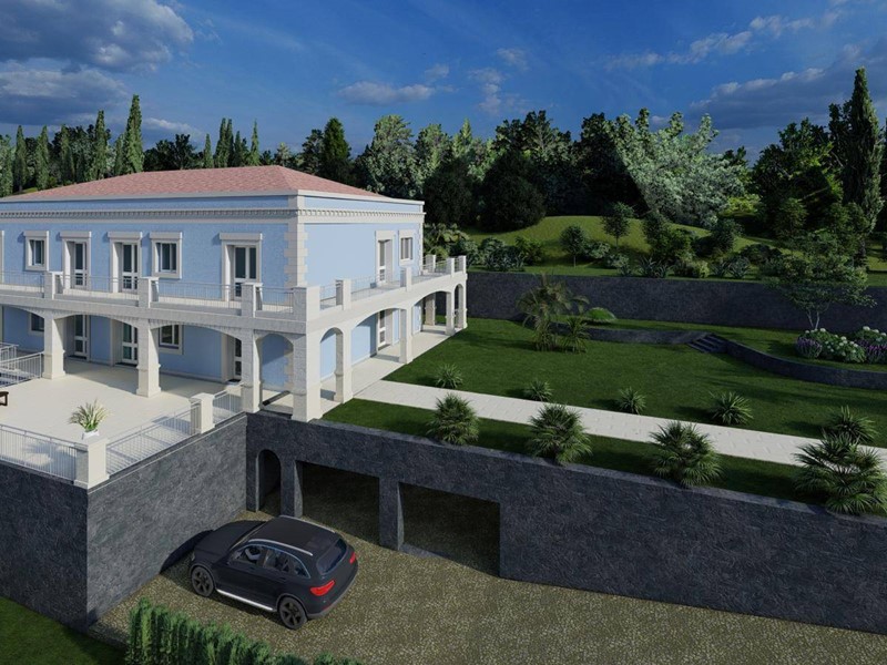 Impianto elettrico ed idrico ultimati fino all'esterno della casa.Impianto di filodiffusione in tutta la casa.Il terreno affaccia sul mare con due grandi terrazzamenti.Sono presenti due grandi vasche di raccolta idrica di 10.000 ltcadauna;impianto di riscaldamento fan coil per tutta la casa.E' presente una grande terrazza collegata al piano terra che si affaccia sul panorama.Completa la casa un garage con tre posti auto ed un parco di 5000mq. C'è la possibilità di consegnarla ultimata sia all'esterno che all'interno definendo un computo metrico con l'eventuale acquirente.Ottima per attività ricettive di ogni categoria.