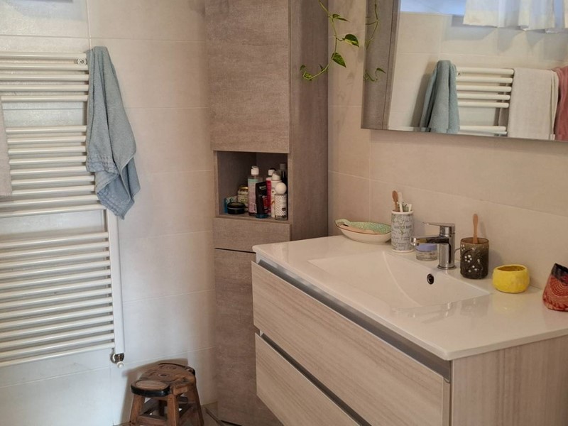 Scopri questo splendido grande appartamento situato in una zona tranquilla e verdeggiante, ideale per chi cerca la pace e la serenità e facilmente frazionabile in due unità. Accesso indipendente con ingresso che conduce al duplice appartamento, uno dei quali è stato completamente ristrutturato con gusto moderno. Questo appartamento offre un ampio soggiorno con angolo cottura, una camera matrimoniale, una cameretta, un bagno con doccia e una lavanderia. Il riscaldamento autonomo a pavimento e i doppi vetri garantiscono comfort e efficienza energetica.