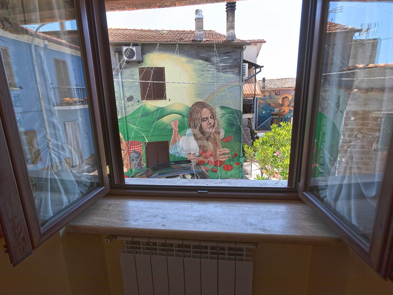Affacciandosi è possibile ammirare i murales di Peter Pan, la Casa degli gnomi e del Mago di Oz.