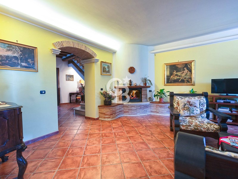 - Al piano terra rialzato troviamo una grande sala con camino e cucina a vista in muratura, un comodo bagno finestrato e una camera da letto matrimoniale con cabina armadio oltre ad un disimpegno adibito ad angolo studio.