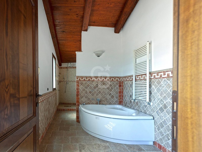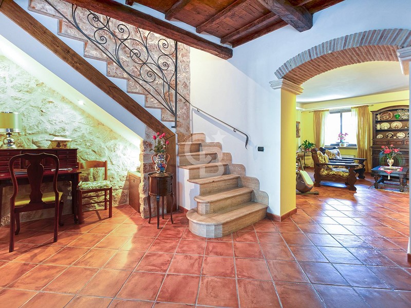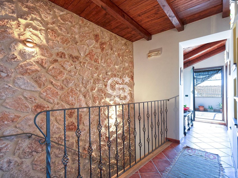 - Una comoda scala con ringhiera in ferro battuto conduce al livello superiore, dove troviamo due camere da letto di cui una con cabina armadio, un bagno over size, finestrato, accessoriato di vasca idromassaggio e doccia, sempre a questo livello abbiamo laccesso alla suggestiva terrazza panoramica dalla quale è possibile ammirare le bellezze del circondario e trascorrere piacevoli momenti in relax e in compagnia.