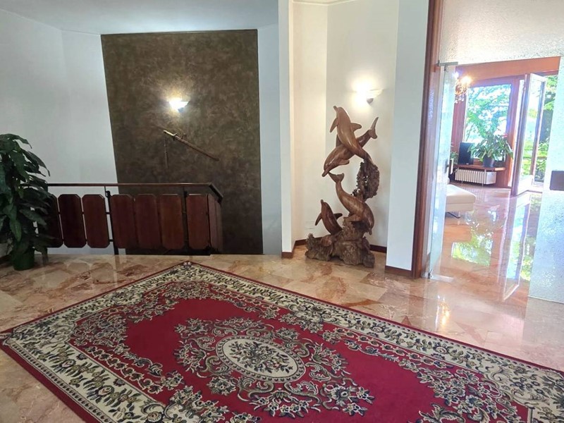 In una delle zone residenziali più ambite, proponiamo in vendita una splendida villa di 600 mq con vista mozzafiato sul lago, ideale per chi desidera vivere in un contesto esclusivo, tranquillo e comodo a tutti i servizi. La proprietà, circondata da un curato e piantumato giardino di circa 1000 mq, si compone di due appartamenti indipendenti, entrambi caratterizzati da ampi spazi e finiture di pregio. L'appartamento al piano primo si apre su un luminoso soggiorno con accesso a un ampio terrazzo panoramico, una cucina abitabile con balcone e sala da pranzo, tinello, tre camere da letto (una con balcone privato) e tre bagni. L'appartamento al piano terra presenta una disposizione analoga, offrendo quindi la massima flessibilità per nuclei familiari numerosi, ospiti o per soluzioni di investimento. Completano la proprietà un box auto quadruplo, ulteriori posti auto scoperti e un parziale arredo di qualità già presente nell'immobile. Labitazione è dotata di impianto elettrico conforme alle normative vigenti, sistema fotovoltaico per la produzione di energia elettrica, impianto solare termico per lacqua calda sanitaria, isolamento termico a cappotto e vetri anti sfondamento. Completa il tutto un antifurto perimetrale. Questa villa rappresenta una rara opportunità per chi cerca comfort, privacy e una vista lago impareggiabile, senza rinunciare alla comodità di avere tutti i principali servizi a portata di mano.