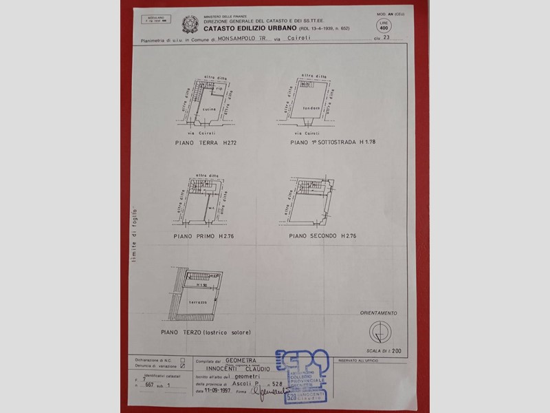 La casa si sviluppa su tre piani per un totale di 100 mq calpestabili, oltre fondaco al piano seminterrato e grande terrazza panoramica all'ultimo piano, per un totale commerciale di circa 125 mq.