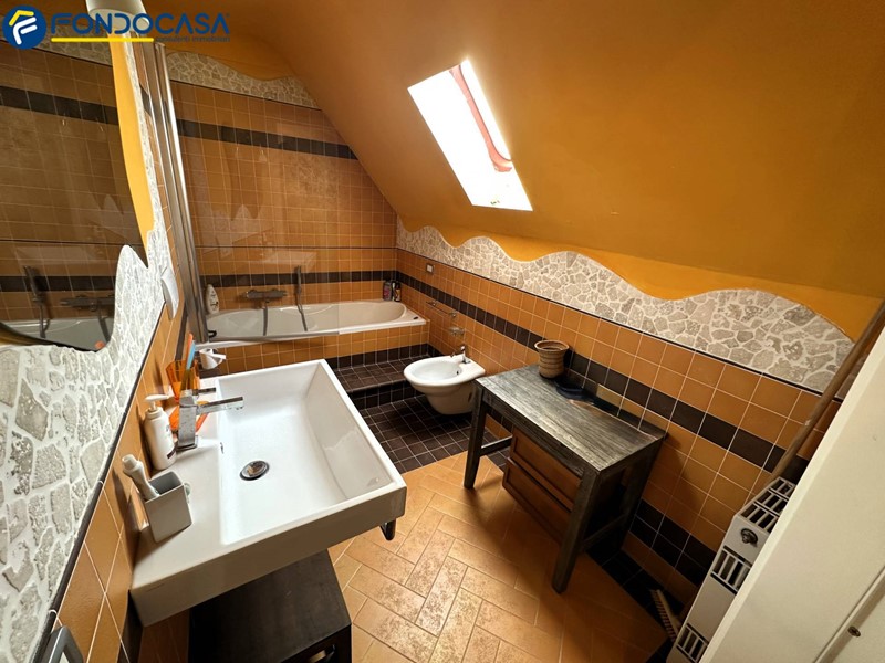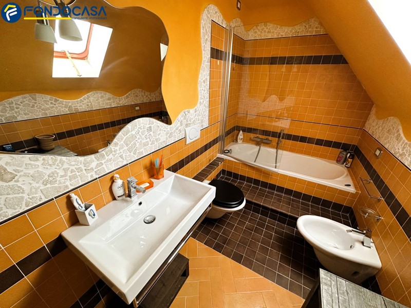 Al piano superiore mansardato, dotato di aria condizionata, sono presenti due ampie camere matrimoniali e un secondo bagno finestrato.