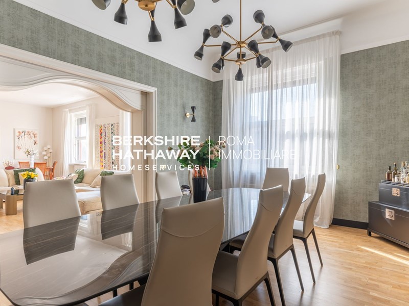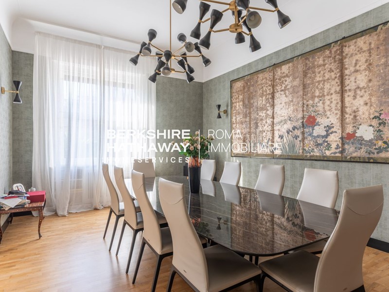 Scopri con la Berkshire Hathaway Roma Immobiliare un'opportunità unica nel cuore di una delle zone residenziali più esclusive, a pochi passi da Villa Ada. Proponiamo la vendita di un lussuoso appartamento, unico al piano, che si estende su oltre 300 metri quadri di pura eleganza e comfort. Gli spazi sono progettati per massimizzare la luce naturale, creando un ambiente accogliente e raffinato. L'architettura dell'immobile è un capolavoro di design esclusivo, con interni realizzati utilizzando materiali di altissima qualità. Ogni dettaglio, dalle finiture pregiate alla disposizione degli ambienti, è stato curato per offrire uno stile di vita senza compromessi. L'appartamento ha l'entrata su un grande ingresso che conduce all'ampia rappresentanza con camino, ideale per intrattenere ospiti e studiata affinché si possa godere della totalità dello spazio oppure scegliere la riservatezza della comoda zona pranzo e dello studio con accesso diretto al balcone. Dal corridoio si accede alla cucina abitabile con balcone di servizio e con locale lavanderia e stireria adiacente. Più avanti troviamo la zona notte che comprende la suite padronale con bagno en-suite e grande balcone ed altra zona con due camere con bagno in comune. A corredo sono presenti altri due bagni. La presenza della terrazza di circa 30mq con pergo tenda garantisce momenti di relax all'aperto. L'appartamento dispone di un sistema di allarme per la sicurezza anche a distanza, climatizzazione, riscaldamento centralizzato e un ampio box auto di 52 mq. Completano la proprietà una cantina di 6 mq e un servizio di portineria che assicura comodità e sicurezza. Situato al secondo piano catastale di un edificio storico del 1930, completamente ristrutturato e dotato di ascensore, questo appartamento rappresenta una rara combinazione di storia e modernità. Non perdere l'occasione di vivere in uno spazio che rappresenta il massimo del lusso e del comfort. ClEnF Consulente Immobiliare Annalisa D. RIF86V24 Tel.