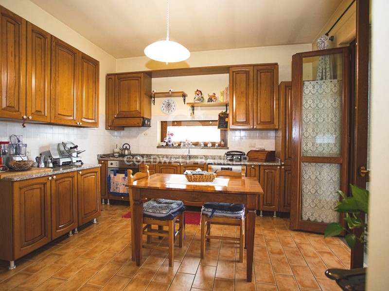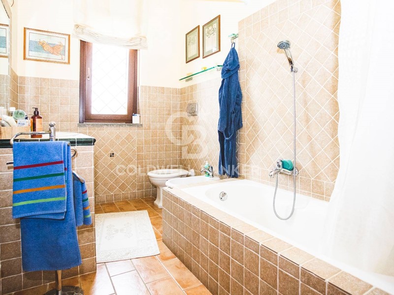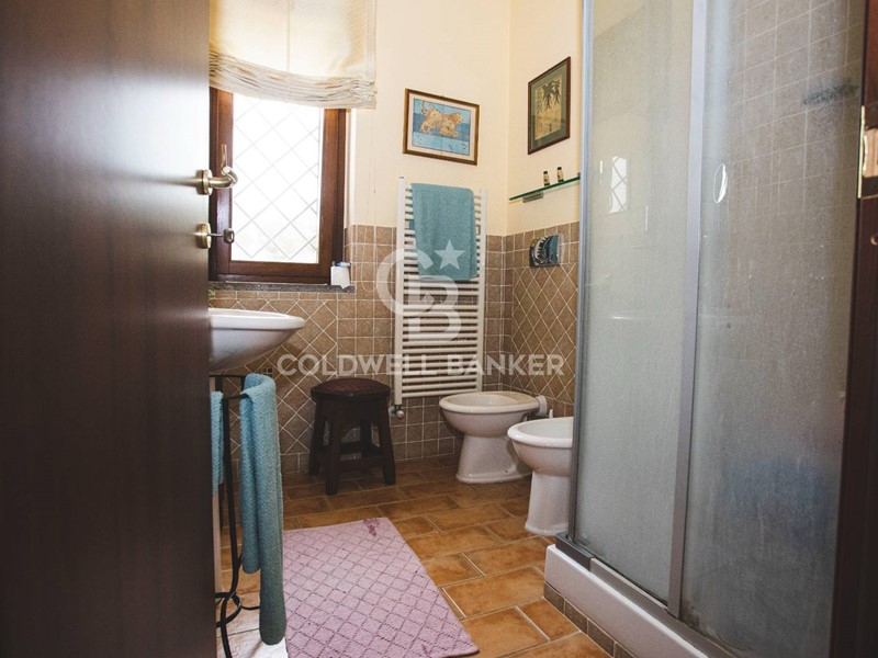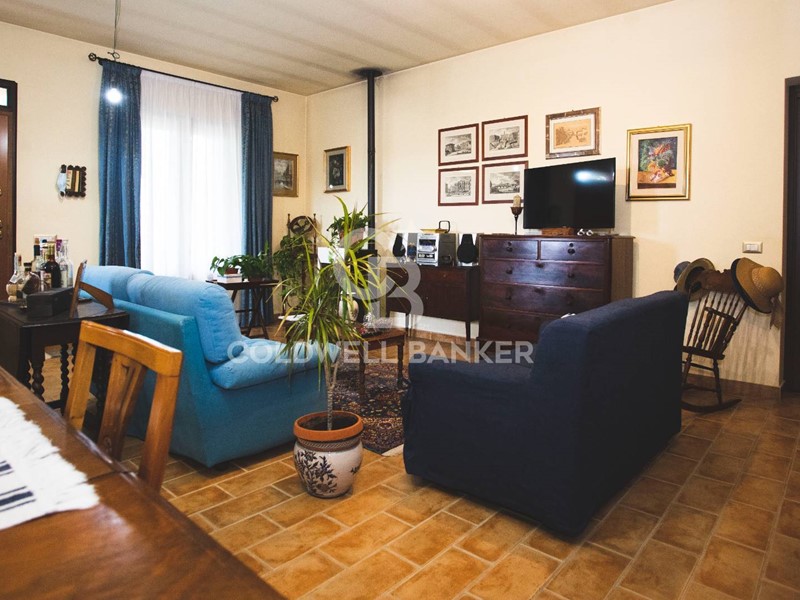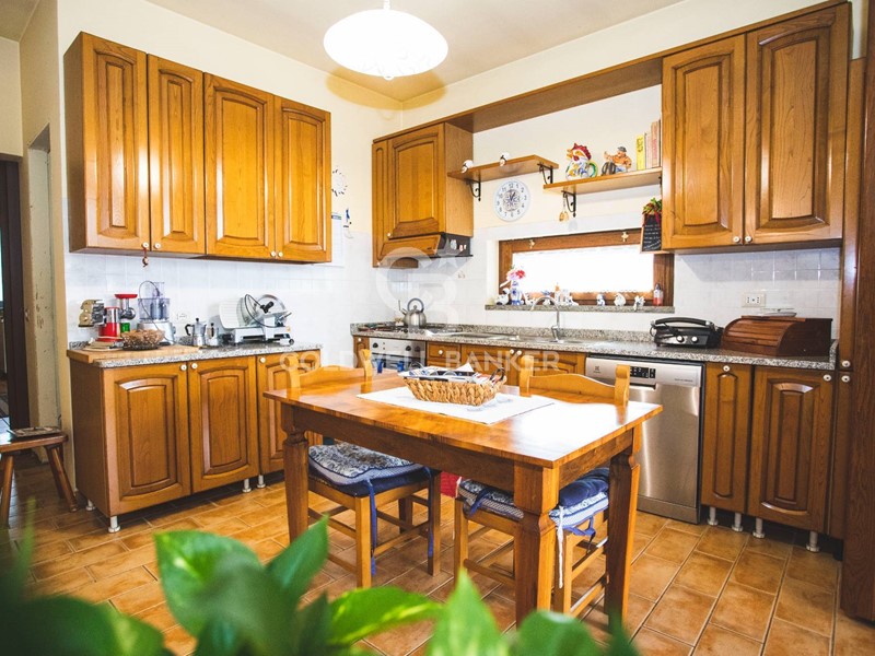 Varcando il portone d'ingresso, troviamo ad accoglierci l'ampio salone comunicante tramite un arco con la cucina abitabile dotata di dispensa e comunicante con un comodo locale lavanderia e con la taverna dotata di camino, utilissima per intrattenersi con parenti ed amici nei giorni di festa! Su una parete del salone sono presenti due porte, una che conduce alla camera padronale dotata di bagno privato, l'altra tramite disimpegno ci porta alle altre due camere da letto, entrambi di ottime dimensioni e al bagno con doccia. L'intera proprietà è rifinita con materiali di ottima qualità quali pavimento in cotto, rivestimenti in travertino, infissi in legno doppio vetrocamera, zanzariere ed inferriate ad ogni finestra; trattandosi di una recente costruzione, la villa si presenta in ottimo stato di manutenzione, è dotata di cappotto termico esterno, di impianto di riscaldamento termo-autonomo a GPL, oltre alla presenza del camino e di una stufa a pellet.