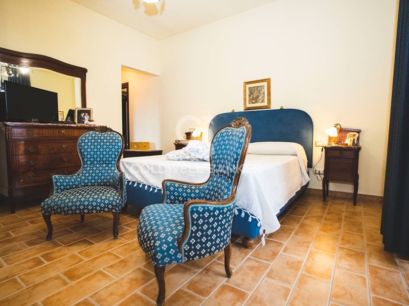 Il giardino avvolge sui quattro lati l'abitazione, e si apre sul terreno adiacente dove sono presenti 380 piante di ulivi, altre piante tipiche della macchia mediterranea abbelliscono e adornano l'area esterna, oltre a tutti i fiori presenti sotto l'ampio e panoramico portico, dove si possono trascorrere serate in allegria in famiglia nelle sere estive, rinfrescati dalla brezza marina.