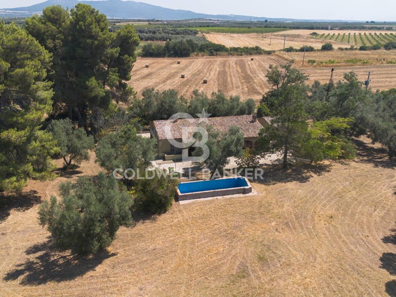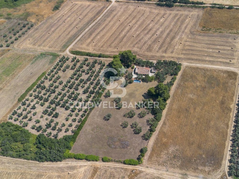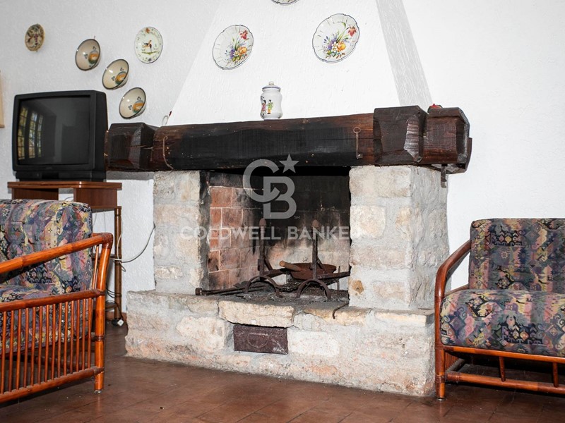 Varcando il cancello d'ingresso, la proprietà si apre sul giardino che circonda l'abitazione su tutti e quattro i lati e si sviluppa prevalentemente nella parte frontale, caratterizzato dalla presenza di molta vegetazione tipica della macchia mediterranea come pini, ulivi ed altri arbusti ad alto fusto, che vanno a creare delle zone d'ombra dove poter trovare sollievo nelle calde giornate estive, rinfrescandosi di tanto in tanto grazie al grande fontanile presente!