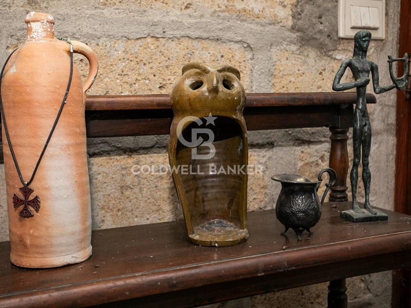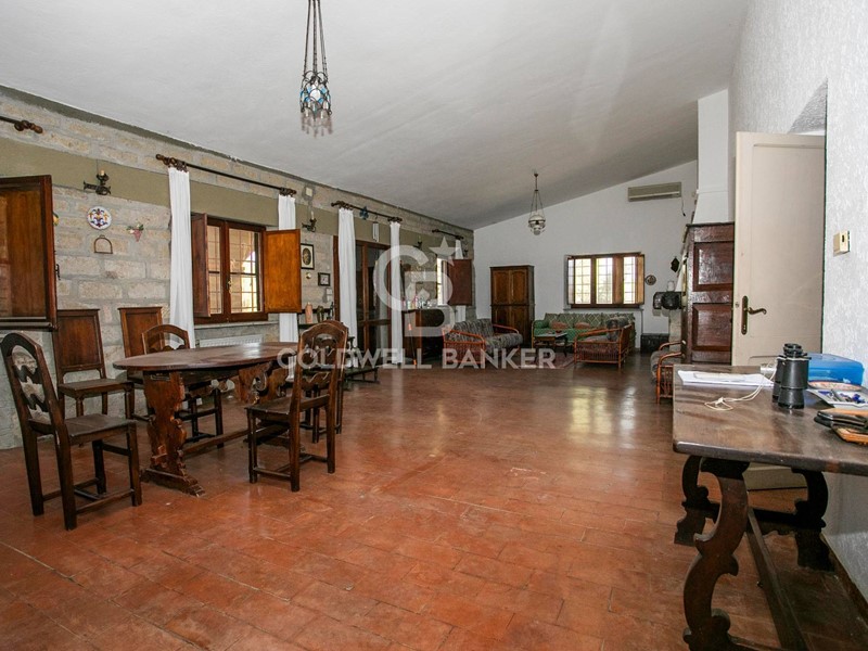 Entrando in casa sembra di fare un tuffo nel passato, elementi caratteristici come pareti a faccia-vista, camini in pietra, cotto originale e travi in legno creano un atmosfera unica, caratterizzando buona parte degli ambienti; i 200 mq di residenziale, distribuiti interamente al piano terra, si compongono di due grandi saloni, ognuno con camino, una cucina abitabile, un comodo disimpegno che ci conduce nella zona notte dove troviamo tre camere da letto di buone dimensioni e due bagni, uno con doccia ed uno con vasca.