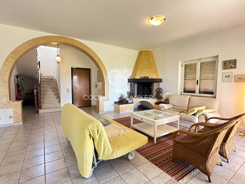 Al piano terra, cè un ampio salone luminoso, ideale per il relax e la convivialità. La cucina abitabile è spaziosa e funzionale, perfetta per preparare pasti in famiglia. Sempre al piano terra, una camera da letto e una zona living che si apre sul portico e sul giardino.