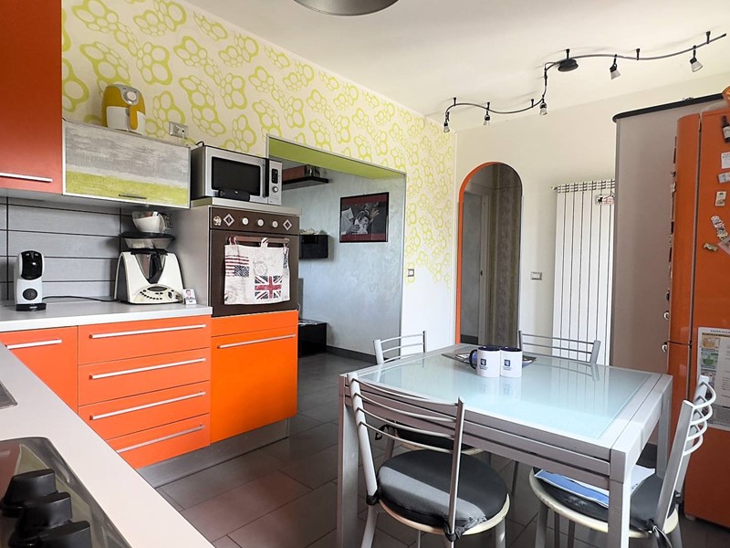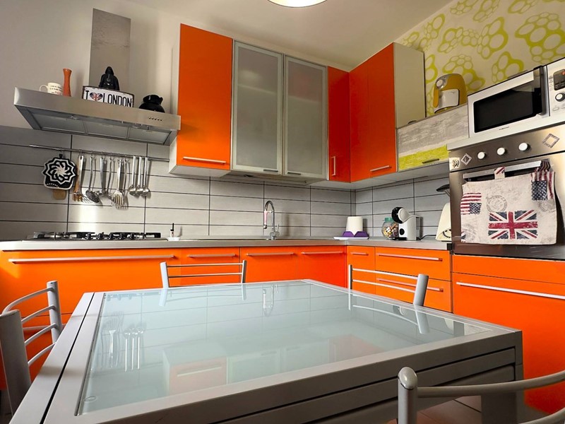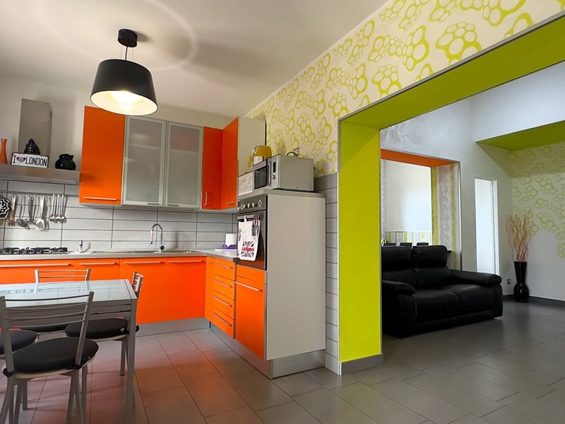 L'ingresso principale conduce alla cucina abitabile, luminosa, spaziosa e dotata di tutti i comfort necessari.