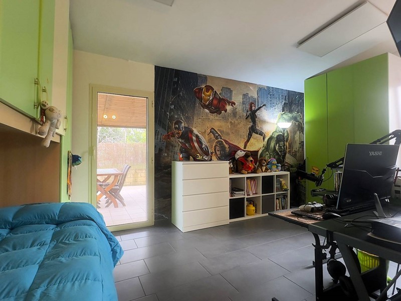 Gli infissi e le finestre sono in PVC con doppio vetro, garantendo un buon isolamento termico e acustico.