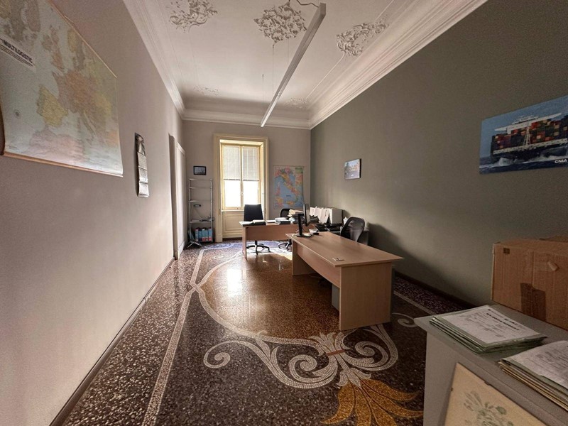 L'immobile si trova al 5 piano di un elegante palazzo residenziale d'Epoca del ' 800 e gode di una splendida vista sulla città.L'ufficio si estende su una superficie totale di 500 metri quadrati, ed è composto da 9 locali, con aria condizionata tra cui spaziosi uffici e sale riunioni, perfetti per ospitare il tuo business.Inoltre, sono presenti 3 bagni + ripostiglio, dotati di tutti i comfort necessari. Le spese condominiali ammontano a 750 euro, che comprendono le spese per la manutenzione dell'edificio e dei suoi servizi, garantendo un ambiente sempre curato e funzionale.Gli ambienti interni sono luminosi e ben rifiniti, con pavimenti in graniglia genovese e ampie finestre che regalano una piacevole luminosità naturale.