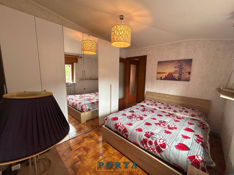 La zona notte si compone di un disimpegno, una spaziosa camera da letto e un bagno finestrato. Due ampi balconi regalano una splendida vista aperta sul verde circostante, garantendo luce naturale e tranquillità in ogni stagione.