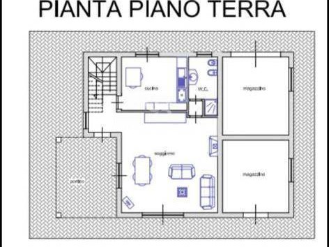 Al piano terra si trovano un ampio salone luminoso con grandi finestre e vista sul lago di Trevignano, una cucina, un bagno, un magazzino e un ampio portico coperto ideale per pranzi allaperto.