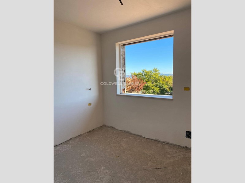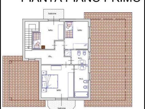 Il piano superiore ospita la zona notte con tre camere da letto, di cui una con bagno privato, secondo bagno e due balconi panoramici.