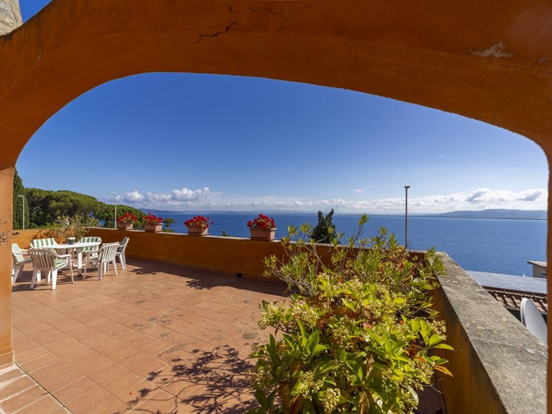 L'abitazione eÌ circondata da una grandissima terrazza che gira su tutti i lati: fronte mare arredata con tavoli da pranzo, angoli relax, sdraio prendisole, eÌ il luogo ideale per passare momenti in compagnia e nel totale relax. Da qui, eÌ possibile godere di una ampia vista mare che spazia dal Golfo di Talamone fino ad Orbetello, oltre a poter ammirare i caldi colori dell'alba.