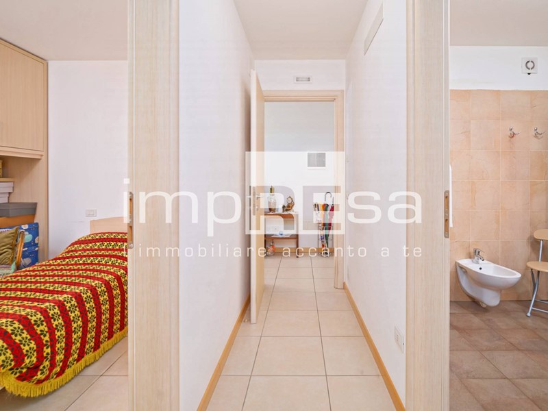 Dall'ingresso, separata da una porta, entriamo nella zona notte con disimpegno, bagno non finestrato, camera singola esposta a ovest e camera matrimoniale esposta a sud.