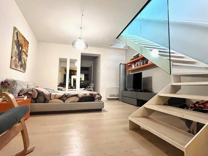 Questo originale appartamento loft offre un'esperienza unica e coinvolgente grazie alla sua progettazione architettonica su due livelli con ampie finestre vetrate scorrevoli. La luce naturale inonda gli spazi interni, creando un'atmosfera luminosa e ariosa che invita alla serenità e alla creatività.