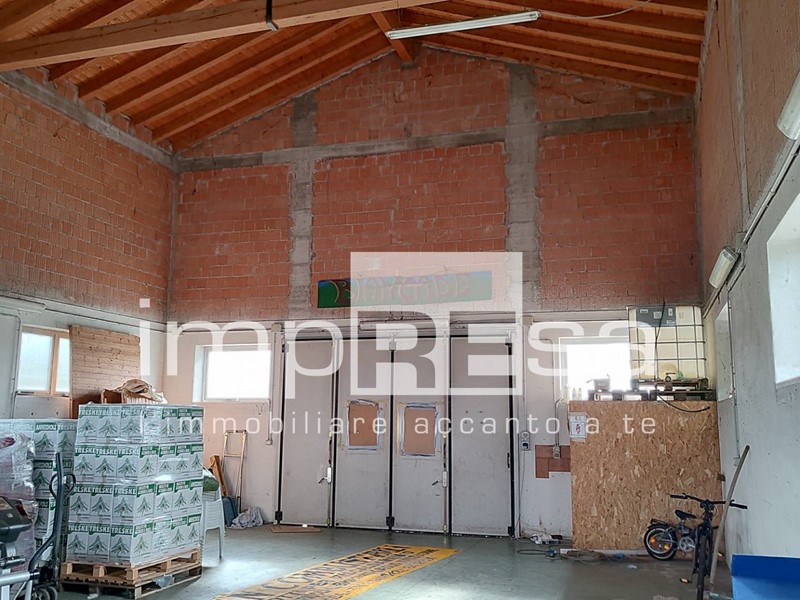 In vendita a Roncade, su lotto di mq 8.400 magazzino di mq 300 su due livelli, piano terra con altezza di mt 8,50 al colmo e interrato.