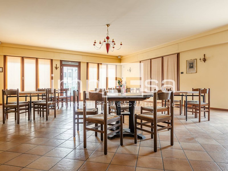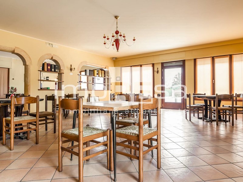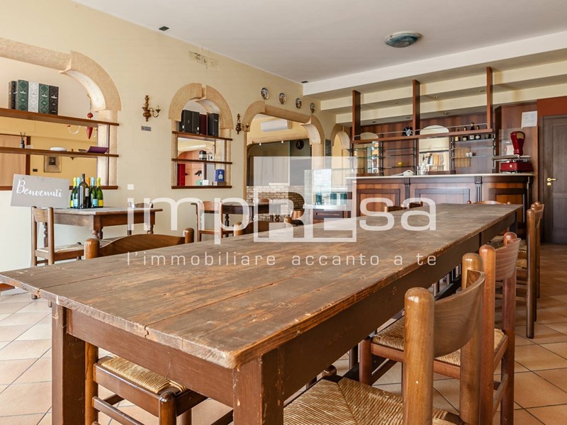 Al piano terra troviamo un locale storico suddiviso da una sala pranzo e bar molto spaziosa, con bancone con retro bar e due bagni.