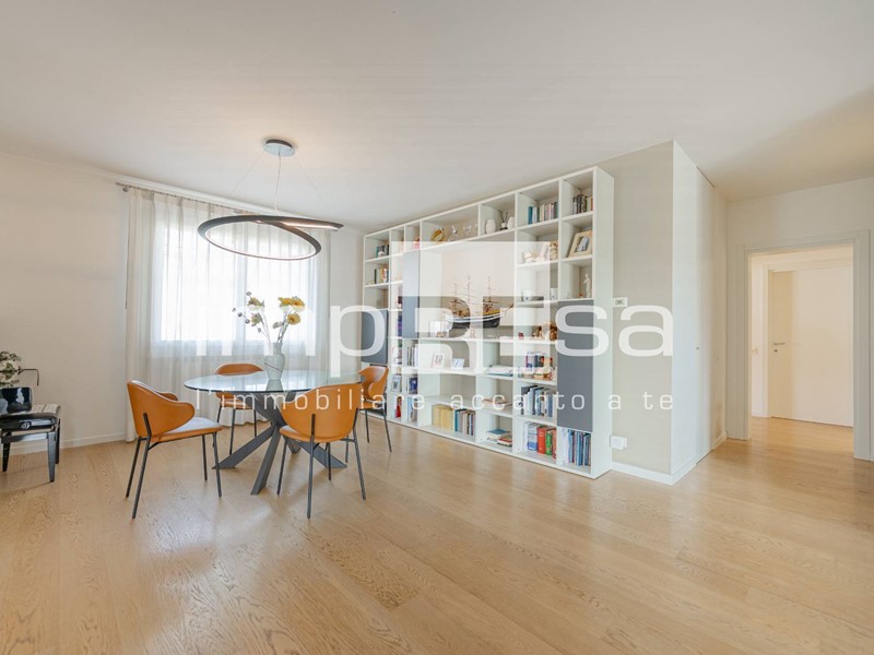 L'ingresso ampio permette la privacy e la possibilità di accogliere gli ospiti, un soggiorno suddiviso da zona tv e zona pranzo con libreria di 63mq, la cucina è abitabile e vivibile tutti i giorni con la famiglia.