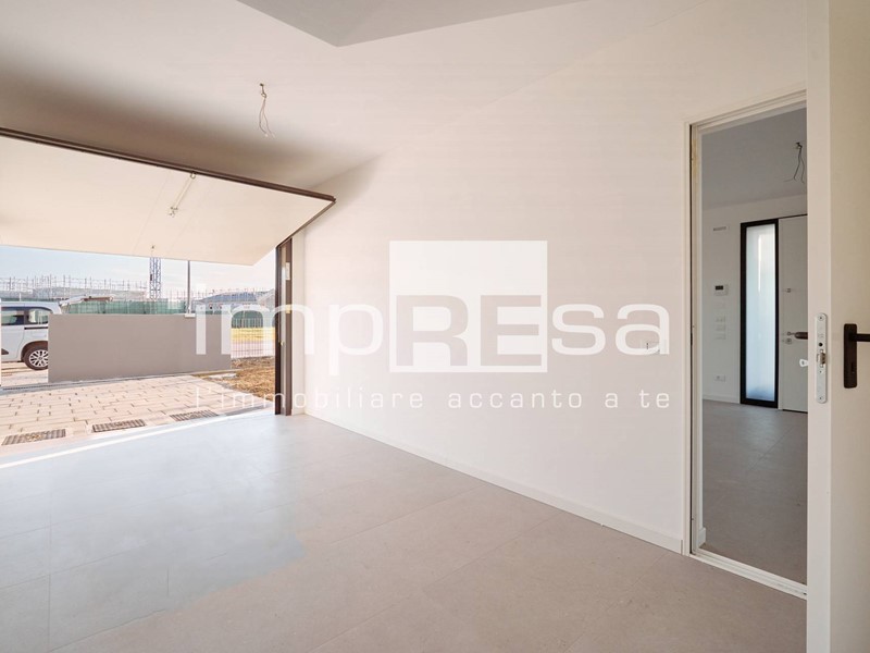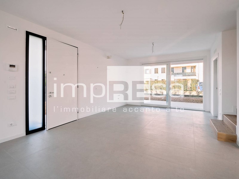 Il progetto è inserito nello splendido contesto del Parco del Sile, e l'immobile qui descritto è un'abbinata disposta su due livelli così disposta: al p. terra ingresso, spazioso soggiorno e cucina a vista con accesso all'ampio giardino di 300 mq, antibagno e bagno/lavanderia, garage singolo;