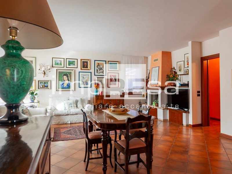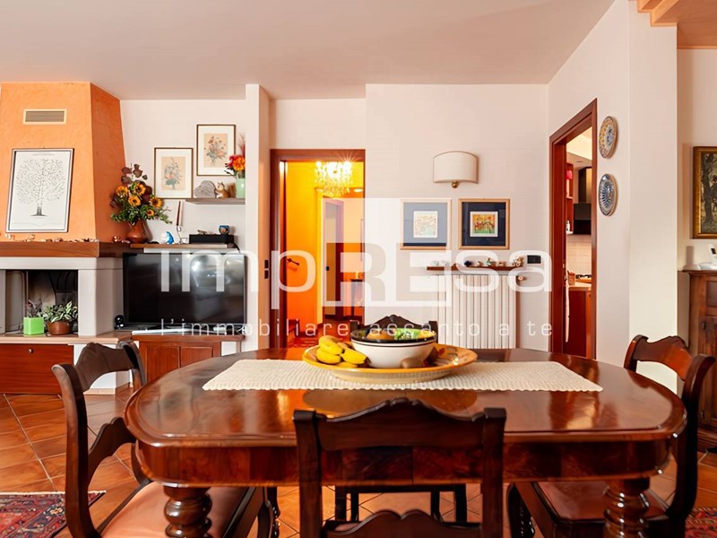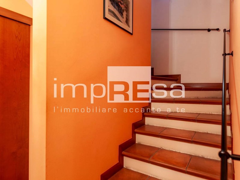 L'immobile di ampie dimensioni è disposto su tre livelli, dal giardino si accede al piano terra ad un ampio e luminoso soggiorno di mq 50 con caminetto, cucina separata di mq 16, bagno e un corridoio che collega il garage.