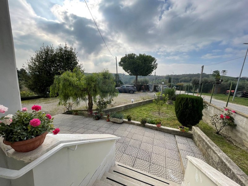 La proprietà offre ampi spazi interni che risultano così distribuiti: piano terra di 156 mq circa con locale cantina, locale dispensa, ripostiglio, bagno oltre ad un garage di 60 mq circa ed una rimessa di 36 mq; l'abitazione al primo piano di 147 mq, accessibile da scala esterna, si compone di: ampio ingresso, un salone, una spaziosa cucina con camino e retrocucina, disimpegno della zona notte con tre grandi camere da letto un bagno con antibagno (ulteriore locale lavanderia). La casa è circondata su tre lati da balconi perimetrali con vista panoramica che dai monti e dalle colline sconfina verso il mare. Attraverso una scala retrattile si accede ad un sottotetto di 147 mq avente altezza max di 2,60 fino ad arrivare ad un'altezza min di 0,60.