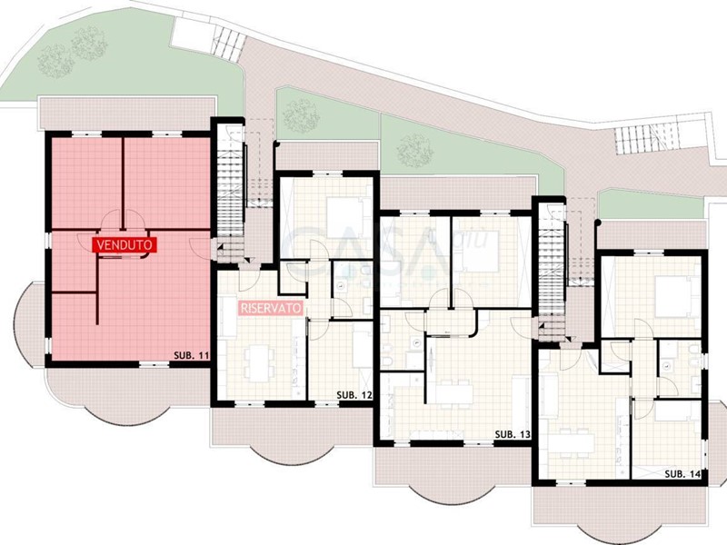 La palazzina di recente costruzione realizzata in muratura con intercapedine isolante interna, si sviluppa su tre piani - terra, primo e secondo - con dieci unità abitative oltre ad un piano seminterrato con garage
