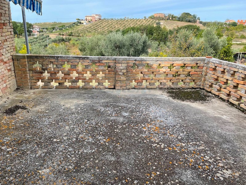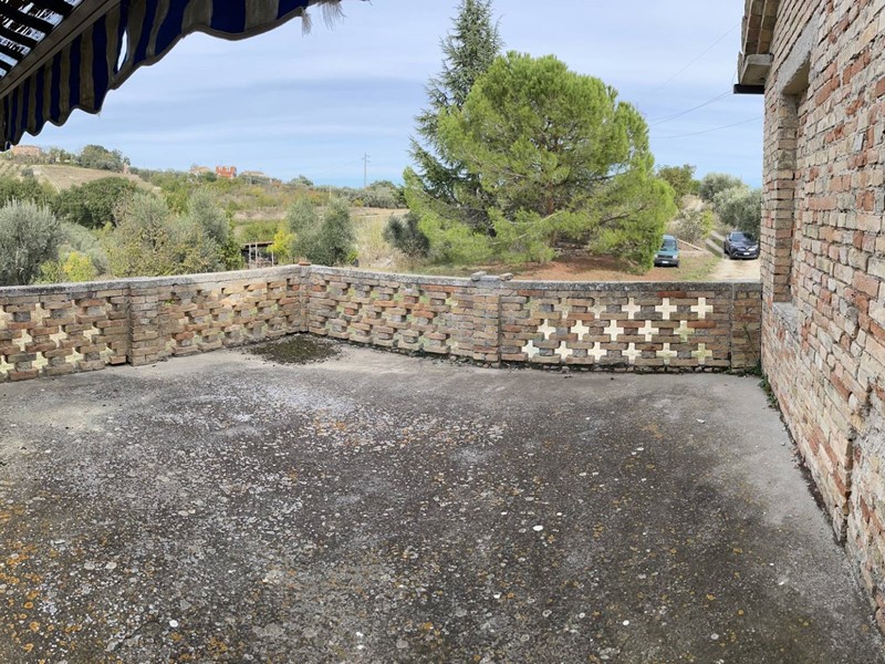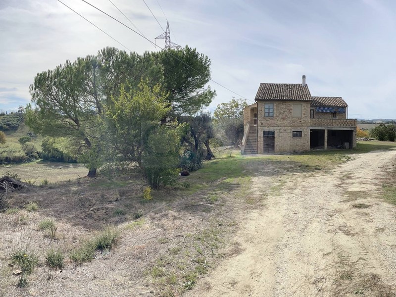 La casa di 210 mq circa è articolata su due livelli: il piano terra è ad uso cantine mentre il piano primo, accessibile da scala esterna, ospita l'abitazione con una splendida terrazza panoramica che si affaccia direttamente sulle campagne e da un porticato con vista colline e paese di Monsampolo. Tutto il terreno di proprietà, delimitato da un fossato è coltivabile ed irrigabile in quanto servito dalla rete di irrigazione del consorzio di bonifica delle marche.